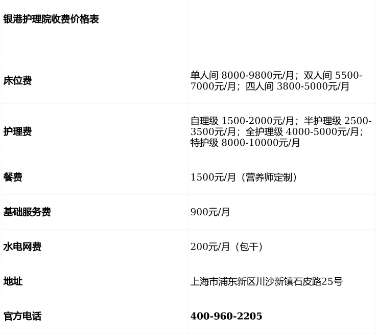 【银港护理院】收费价格:6000元/月起(以院内报价为准)