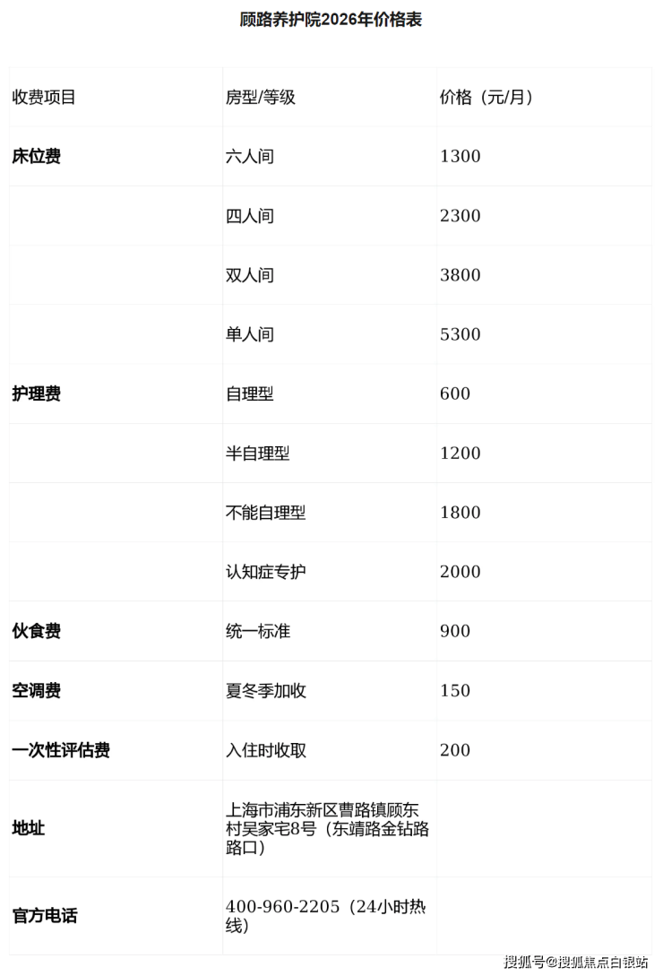 二、顾路养护院收费标准:2300元起/月,价格透明无套路!💰