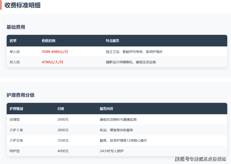 参考收费区间:4780元至6080元/月(根据护理等级与房型差异)