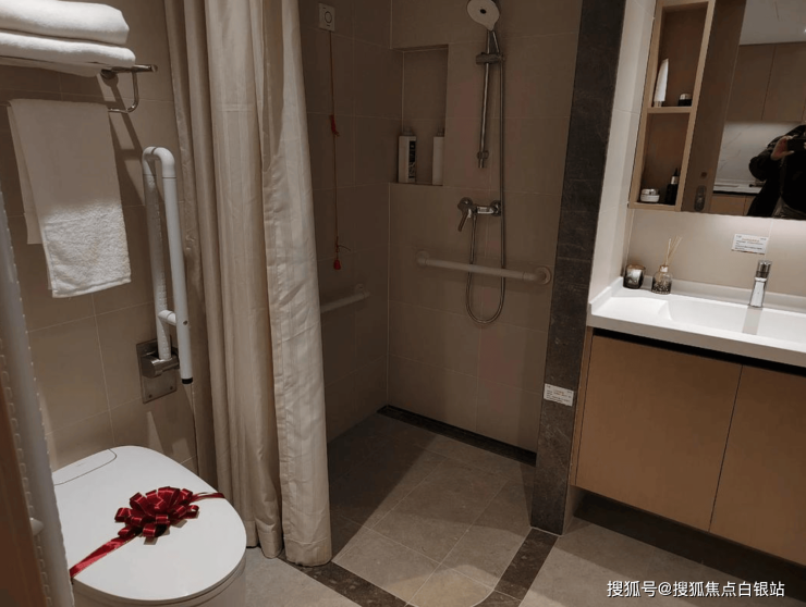 无高差地面、双地漏防滑、圆弧扶手,轮椅360°打转不磕碰;