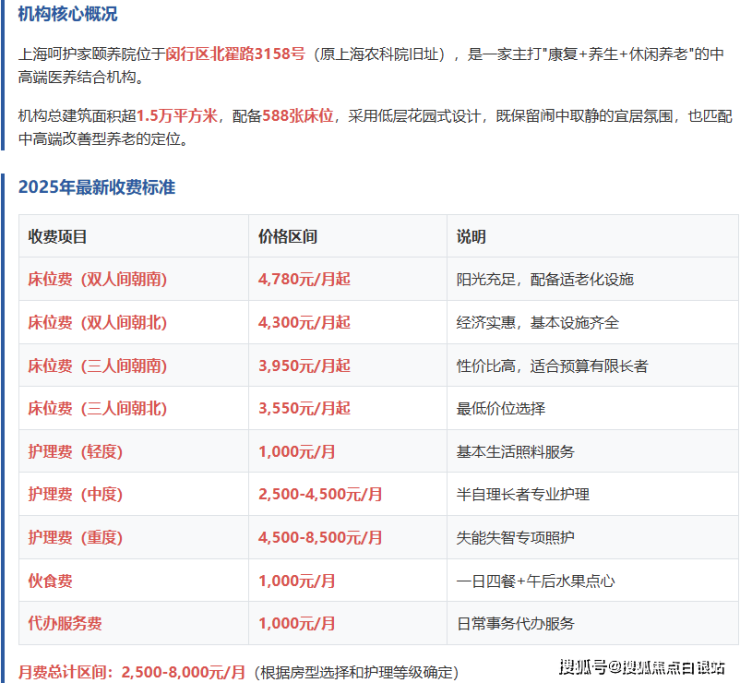 上海呵护家颐养院收费标准-2025年12月地址网站及电话号码查询