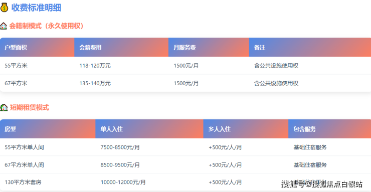 55平方米户型:总价118-120万元,每月服务费1500元