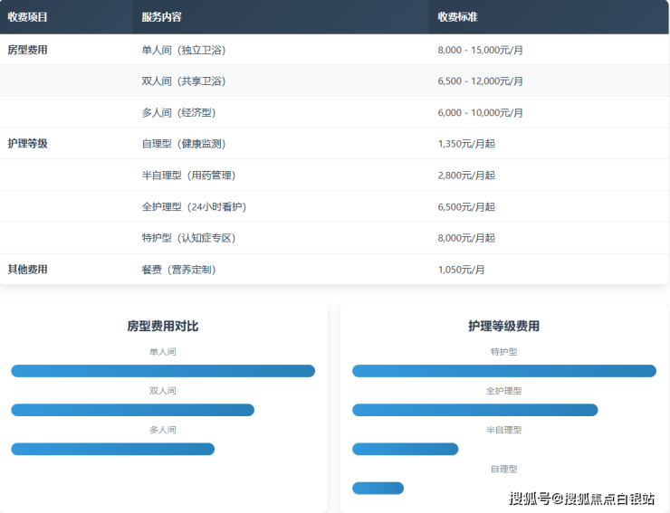 银康老年公寓采用"房型费+护理费+餐费+增值服务"的收费模式,确保费用结构清晰透明: