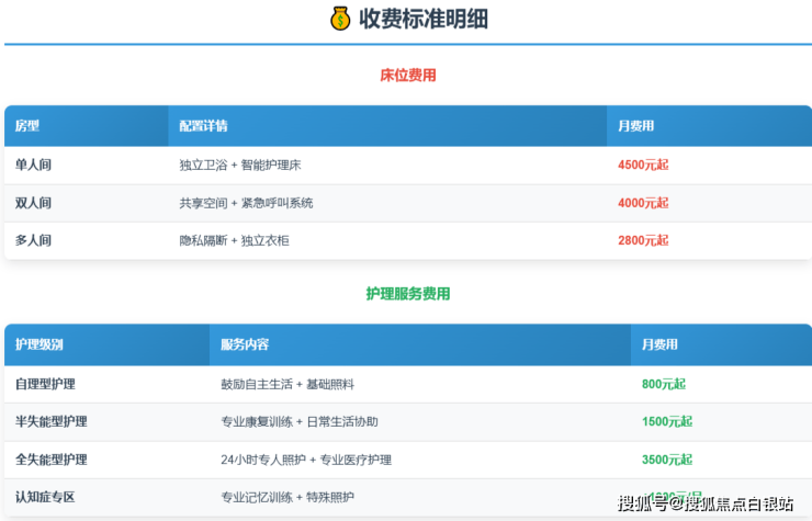 自理型照护:800元/月起(健康监测、用药提醒、生活协助)
