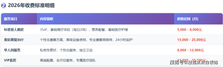 基础参考费用:住院康复费用5000元起/月(根据具体康复项目及病房类型浮动)