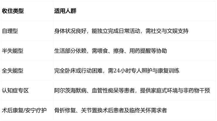 二、收住对象:覆盖全周期健康需求