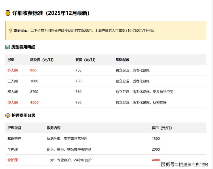 透明收费体系:分级定价清晰,长护险补贴实惠