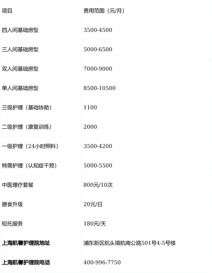 上海航馨护理院电话400-996-7750,地址位于上海市浦东新区航头镇航南公路501号4-5号楼,收费4000元/月起,收住自理型、半失能、失能及认知症长辈,提供分级照护、康复支持及智慧环境,是浦东新区医养结合的标杆选择。