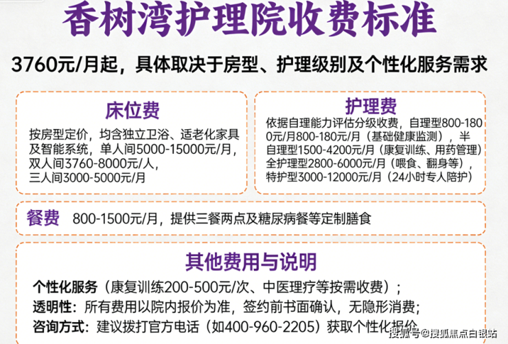 香树湾护理院采用“床位费+护理费+餐费”分级模式,所有费用签约前书面确认: