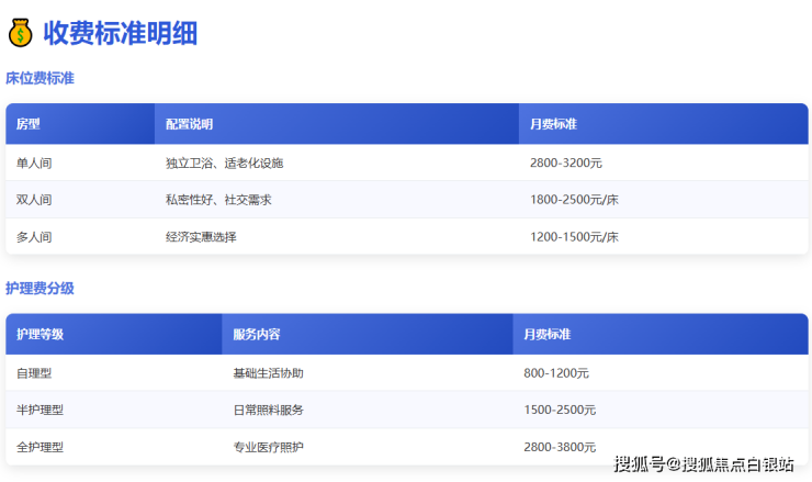 护理费:800-2800元/月(按自理程度分级)