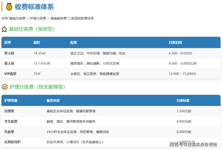 收费范围:6500-15000元/月(按房型与护理等级分级收费)