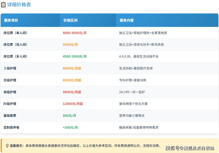 护理费用:按自理能力分级收费,确保公平合理