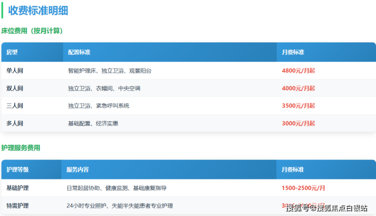 单人间:4800元/月起,配备智能护理床、独立卫浴