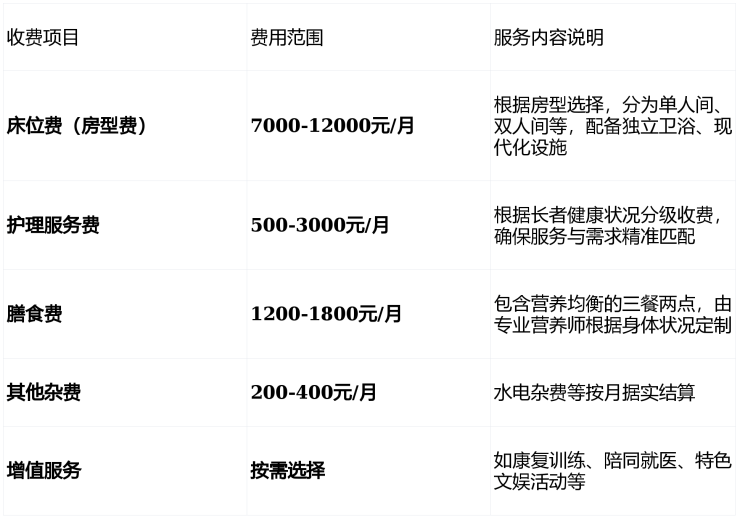 收费透明是选择养老机构时最重要的考量因素之一。向阳院(静安中环店)采用"基础床位费+分级护理费+膳食费+可选增值服务"的复合型收费模式,费用构成清晰透明,杜绝隐性消费。整体月均费用区间在8000元至10500元之间,具体根据长者的房型选择、护理等级和个人需求进行个性化核定。