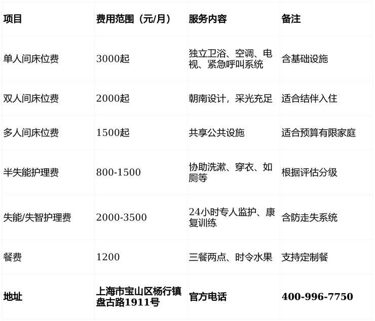 价格仅供参考,具体费用需结合长者身体状况及房型评估,详询400-996-7750获取个性化报价。