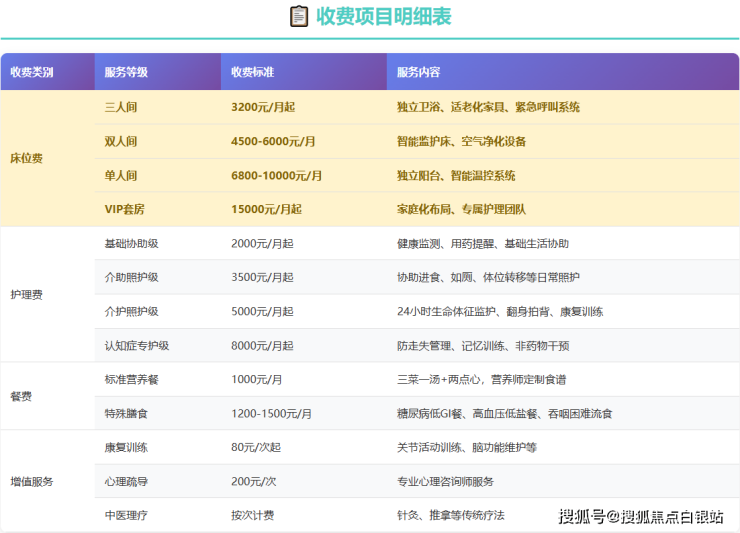💡 适宜人群 :自理老人基础养老、半失能/失能老人专业照护、认知症(阿尔茨海默症)患者专护区、术后康复人群、慢病管理长者