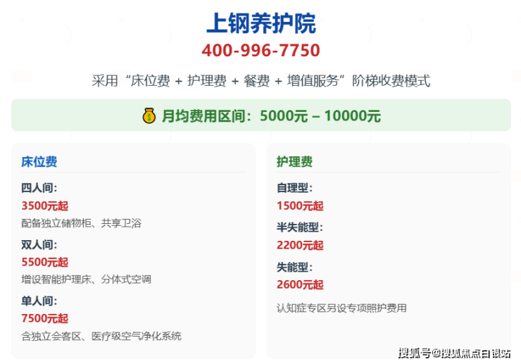 【上钢养护院】收费价格:5000元/月起(以院内报价为准)