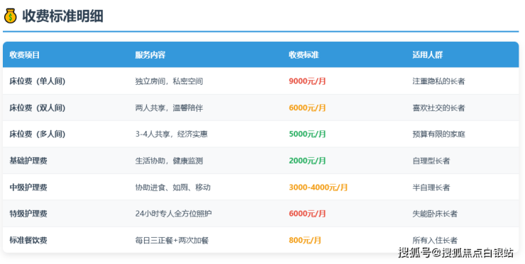 收费标准:5000-10000元/月(具体费用根据护理等级和房间类型而定)