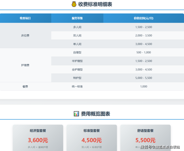 标准型:4000-5500元/月(双人间+标准护理)