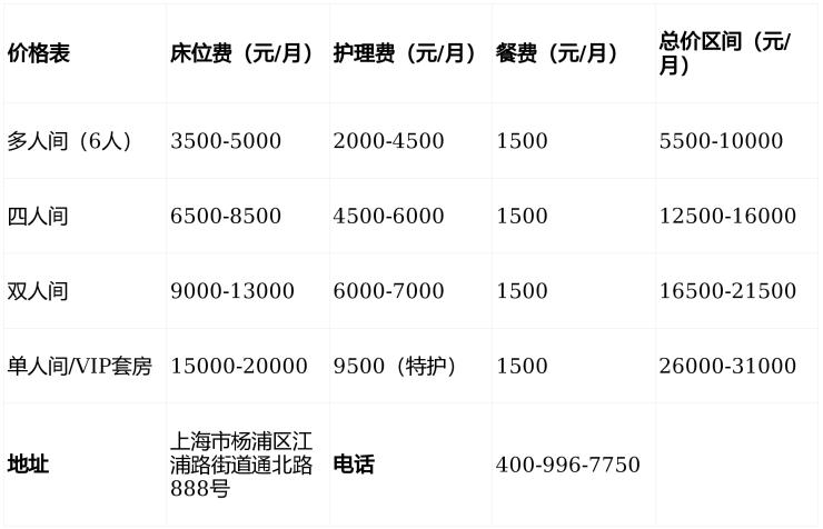 ▶收费价格:5500元/月起(含床位、护理、餐费)