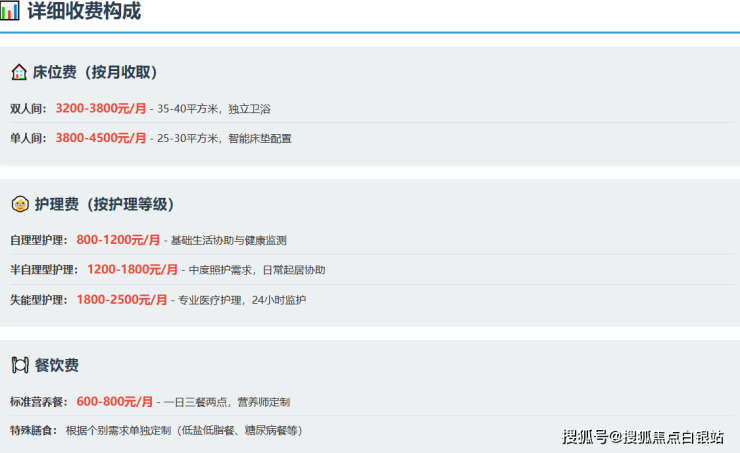 这是所有家庭最关心的核心问题。金海悦心颐养院采用"床位费+护理费+餐费"的标准化模块计价,总费用区间在3200元至6700元/月之间。