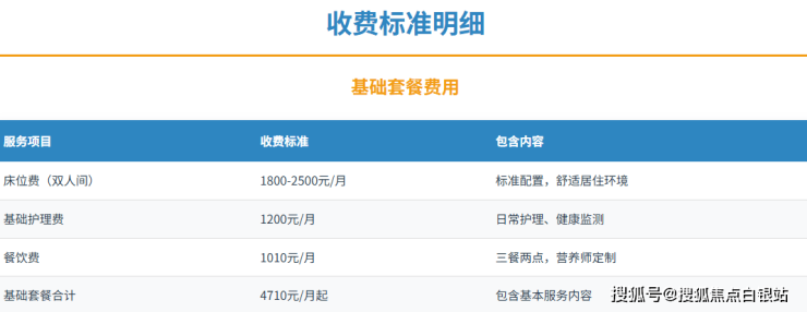 基础起价:4710元/月起(含床位费、基础护理、三餐两点)
