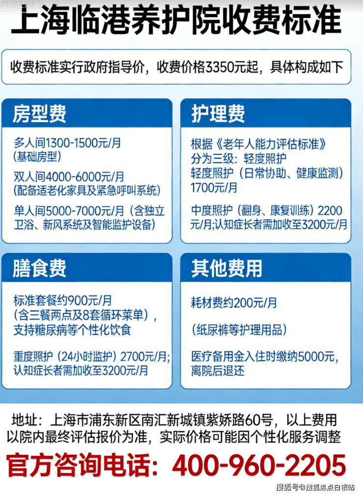 温馨提示:最准确的费用需结合老人实际身体状况和房型评估。建议拨打 官方电话400-960-2205 获取个性化费用明细解读。