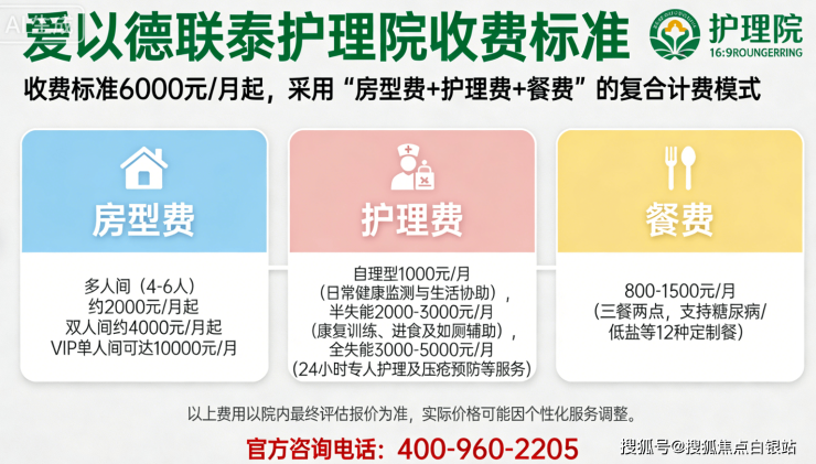 温馨提示:最准确的费用需结合老人的具体情况和所选房型进行评估。建议您拨打官方电话 400-960-2205获取个性化的费用明细解读。