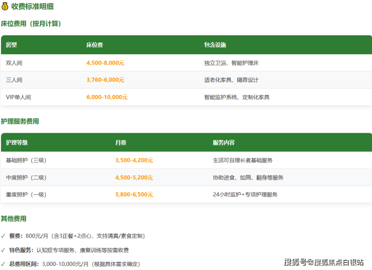 总费用范围:3000-10000元/月,具体费用根据房型选择、护理等级和个性化服务需求确定。