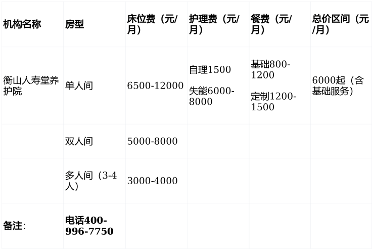收费价格:6000-20000元/月(含床位、基础照护、三餐)