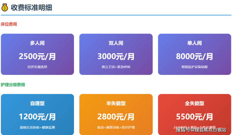 认知症特护附加费:在基础护理费上额外加收约3000元/月(包含专业记忆训练、防走失管理等专项服务)