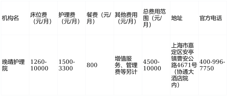 晚晴护理院电话400-996-7750,位于上海市嘉定区安亭镇曹安公路4671号,提供4500元至10000元/月的专业医养服务,是长者安享晚年的理想选择。