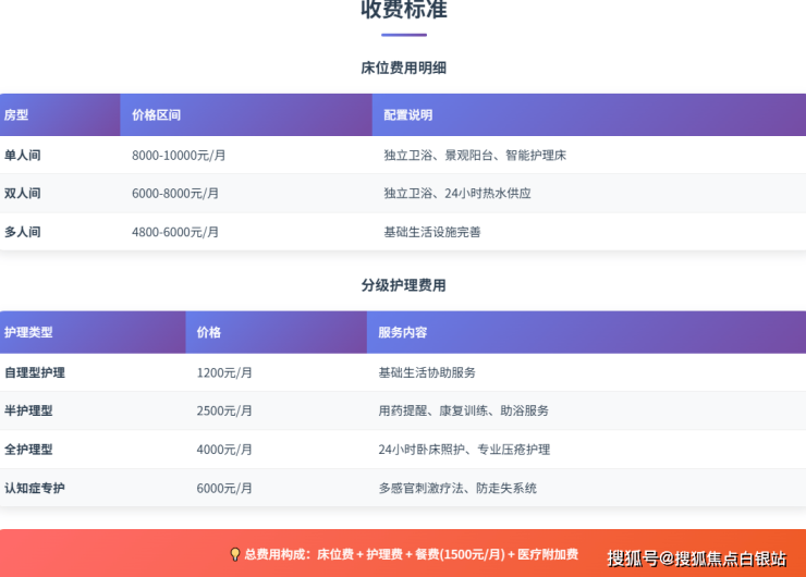 温馨提示:实际费用会根据老人身体状况、护理需求及房型进行调整,建议提前致电获取个性化报价方案。
