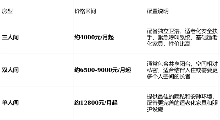 价格参考:6000元/月起(基础套餐,根据房型及护理等级浮动)