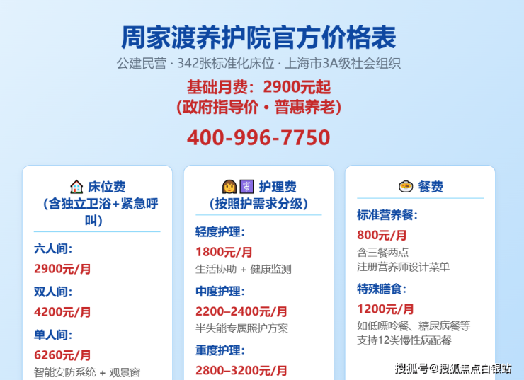 💰 收费模式:采用“床位费+护理费+餐费”透明计价,基础月费2900元起,比同区域私立机构低30%-50%!