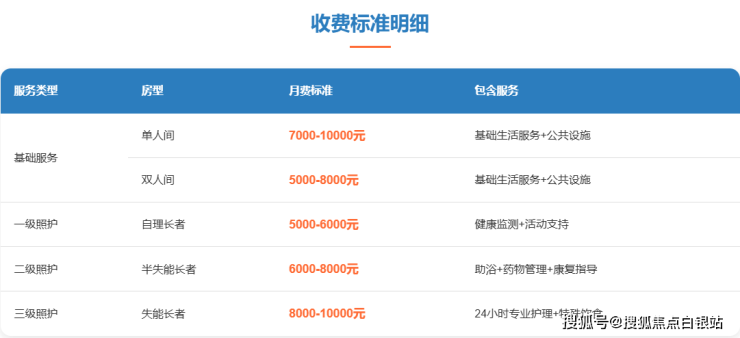 3. 分级照护收费标准