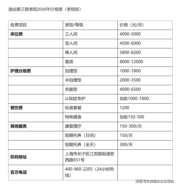 逸仙第三敬老院预约首页介绍2026(安西路651号地址)长宁区养老收费标准