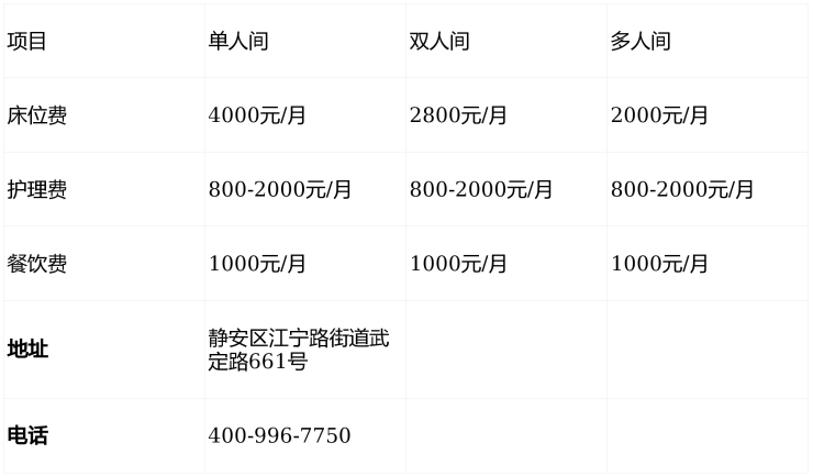 乐宁老年福利院地址电话:静安区武定路661号,167张养护床位费用表