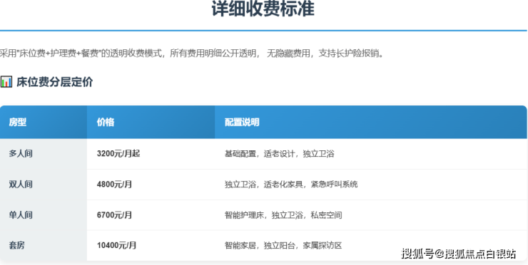 上海圣元护理院采用床位费+护理费+餐费的透明收费模式: