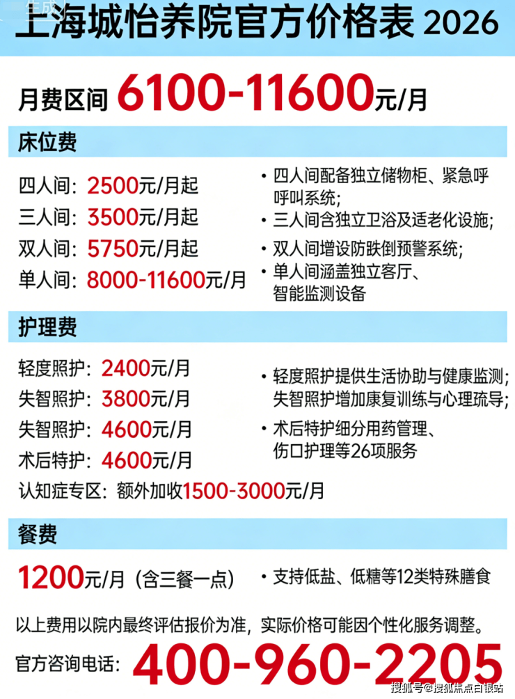 2026国企养老收费一口价!上海城怡养护院入住地址流程|全护理等级价目表