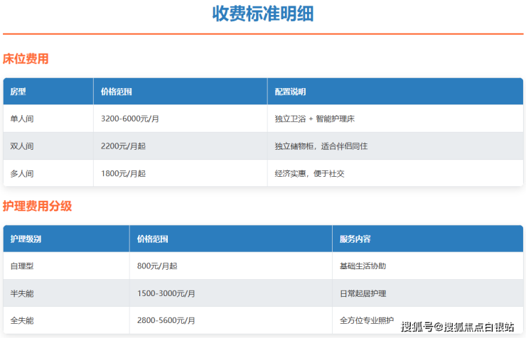 单人间:3200-6000元/月(独立卫浴+智能护理床)
