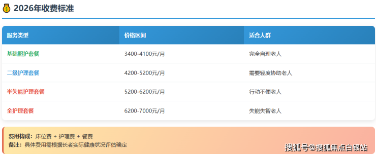 💰 2026年收费标准:3400 - 7000元/月(根据房型、护理等级动态调整,后面会细说)