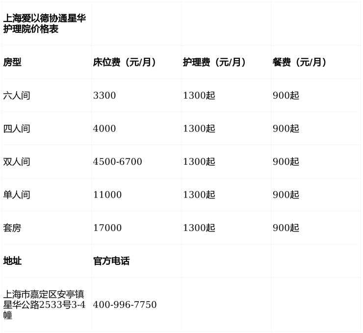 上海爱以德协通星华护理院电话400-996-7750,地址位于上海市嘉定区安亭镇星华公路2533号3-4幢,提供3300元/月起的高品质医养服务,涵盖分级护理、智能安防及丰富文娱活动,是长者安享晚年的理想之选。