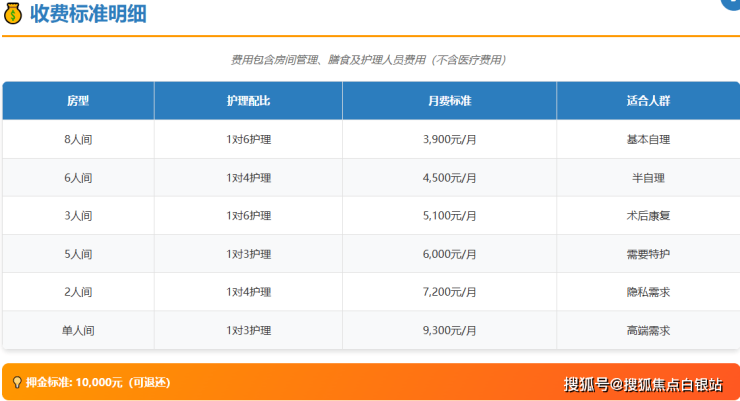 特殊费用:对于有特殊护理需求(如失能、失智专业照护)或需要额外医疗康复服务的,可能会根据评估结果产生附加医疗费用。