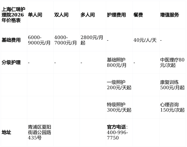 上海仁瑞护理院(地址:公园路435号)家属真实评价+收费对比2026