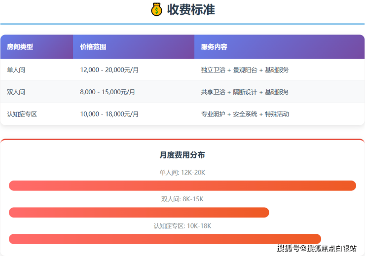 嘉道·耆乐园采用"房型+护理等级"的收费模式,所有费用公开透明: