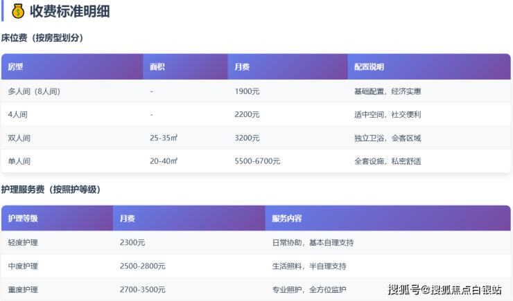 重度护理:2700-3500元/月(适合需要专业照护的长者,提供全方位监护)