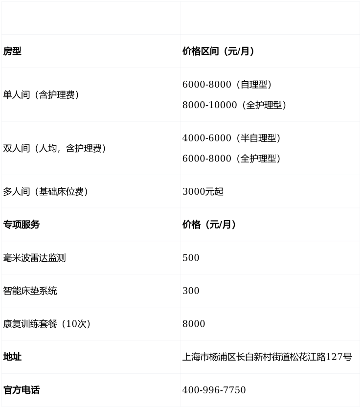 价格仅供参考,具体费用需根据长者健康评估结果确定,无隐形消费。☎官方电话400-996-7750,获取个性化报价方案。