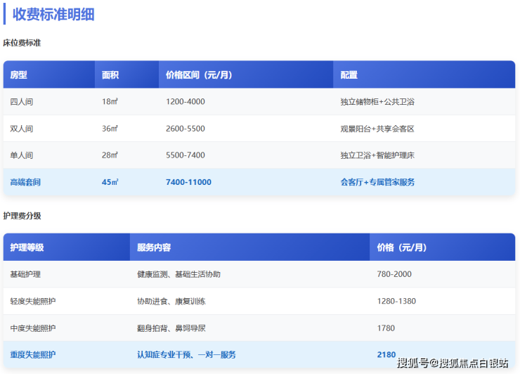 单人间:5500-7400元/月,配备独立卫浴、智能护理床