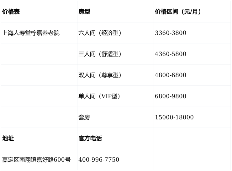 ▶人寿堂柠嘉养老院收费价格:3360-18000元/月(按房型、护理等级分层定价)